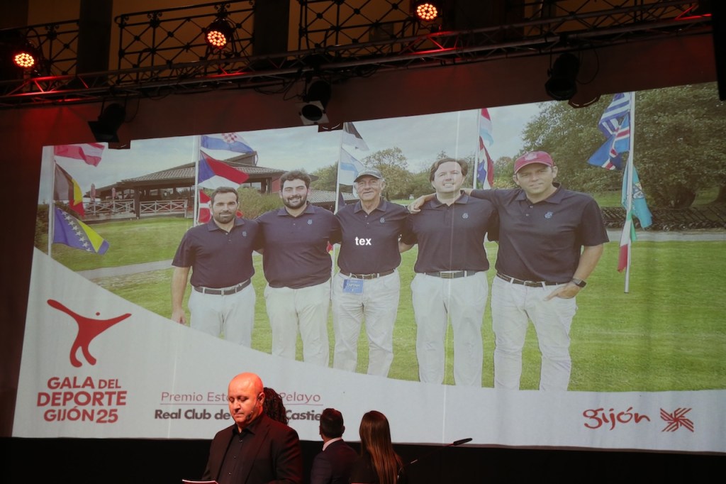 Presentes en la entrega del galardón el presidente de la FGPA Alfredo Alvarez, gerente de la misma Borja del Campo y algunos socios de club.