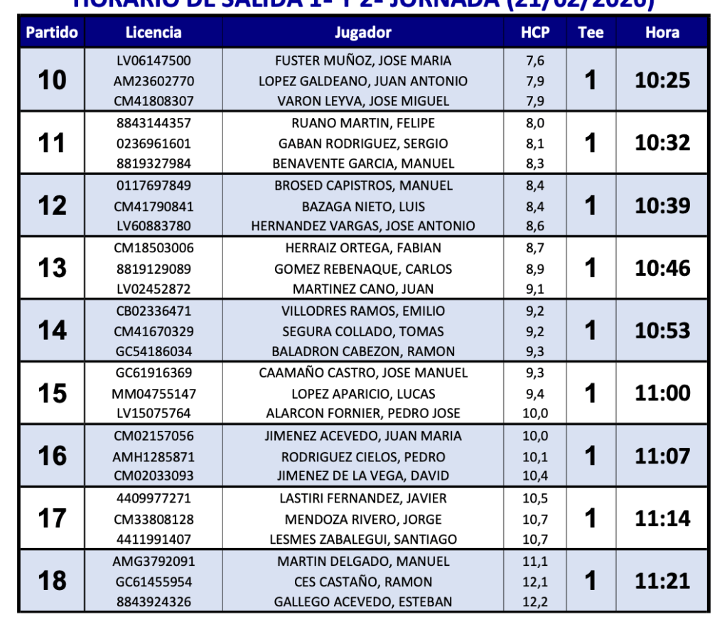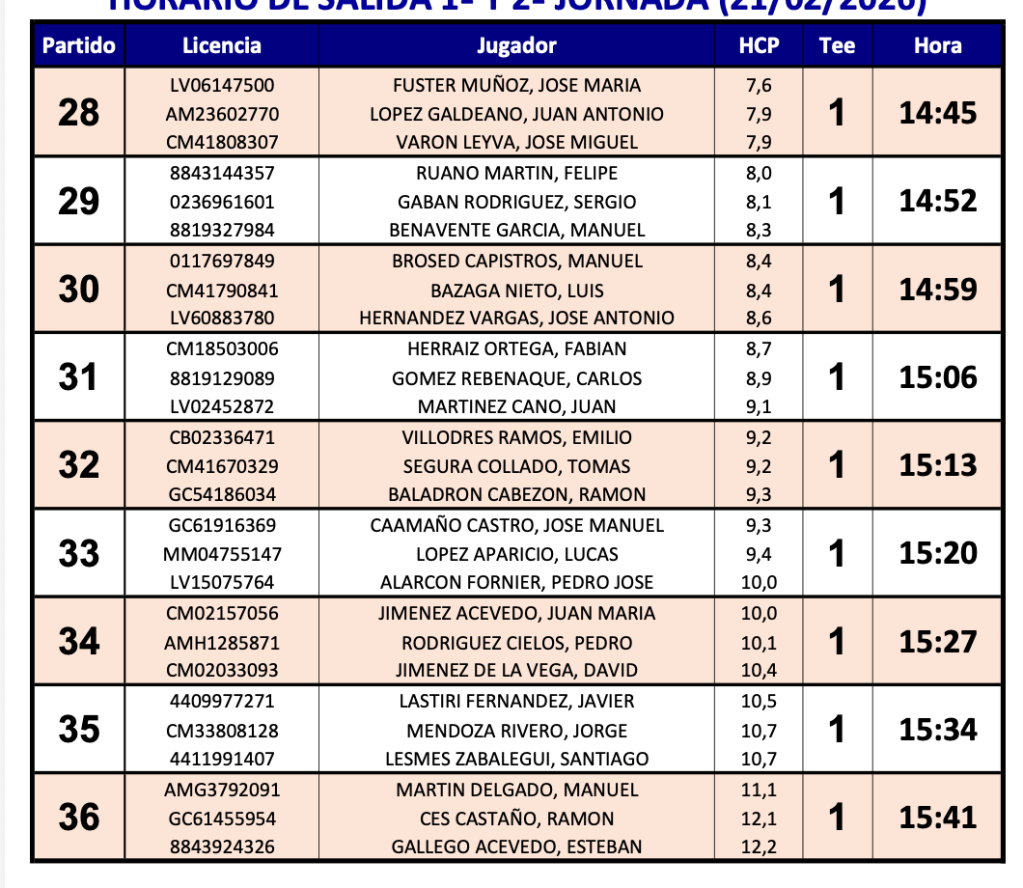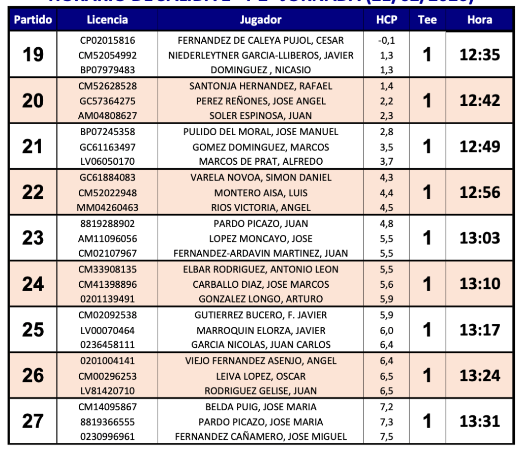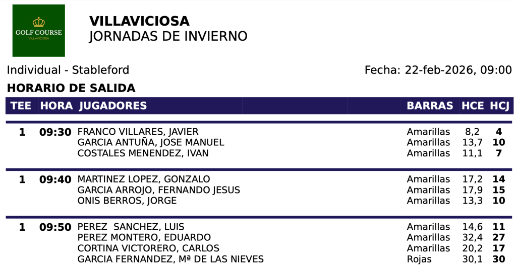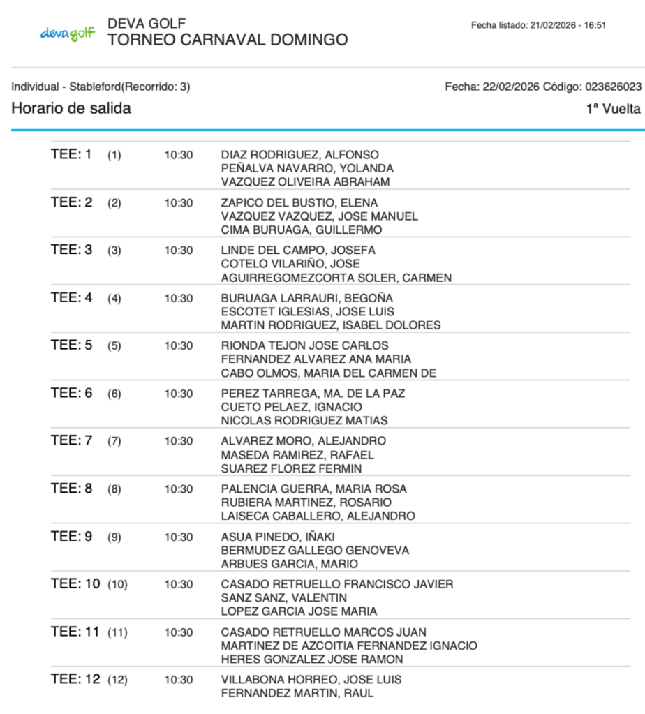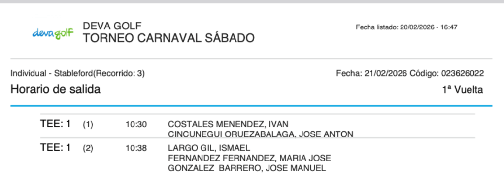 Salidas domingo Torneo Carnaval 2026 / Deva Golf