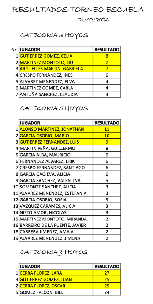 Resultados Torneo Escuela Las Caldas /21 feb 2026