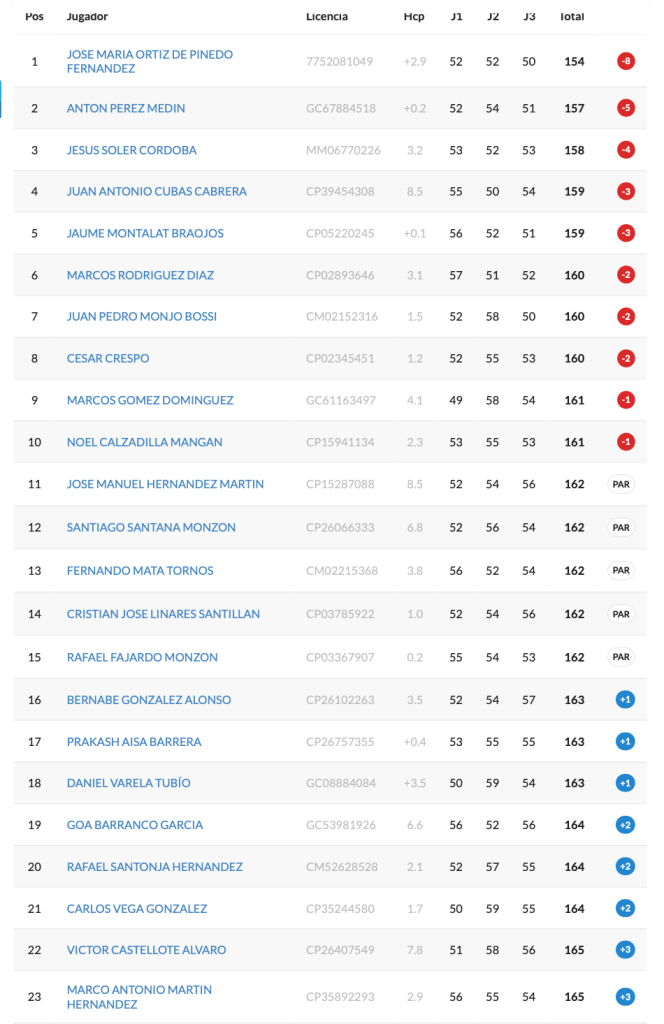 Resultados Campeonato de España Masculino de P&P 2026 / Las Palmeras Golf
