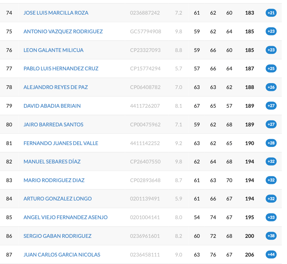 El mejor jugadorasturiano en la prueba fue Jose Miguel Fdez. Cañamero con un total de 173 golpes en tres tarjetas, ocupo el puesto 54º, Jose Luis Marcilla finaliza en el 74º con 183 golpes, 84º para Arturo Glez. Longo, 85º Angel Viejo, 86 Sergio Gaban y 87º Juan Carlos García Nicolas