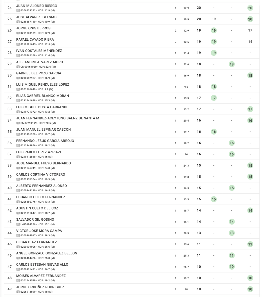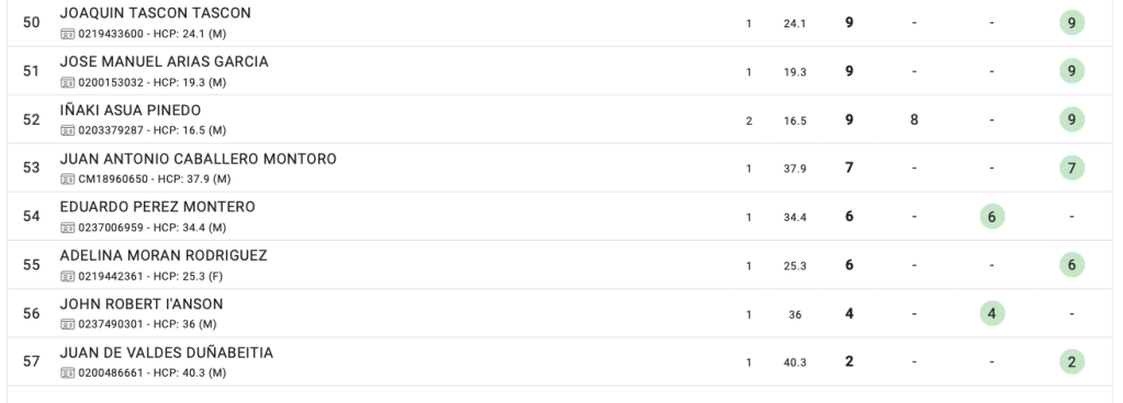La clasificación obtenida en este campeonato puntuará para el Ranking Nacional de Pitch & Putt, por el que