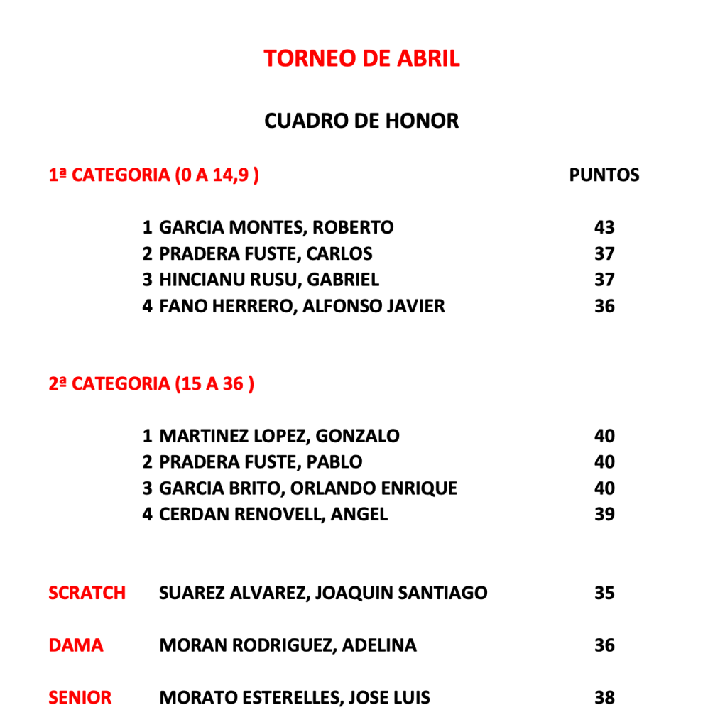 Resultados 8ª jornada Liga Open 25/26 – Cierro Grande Golf