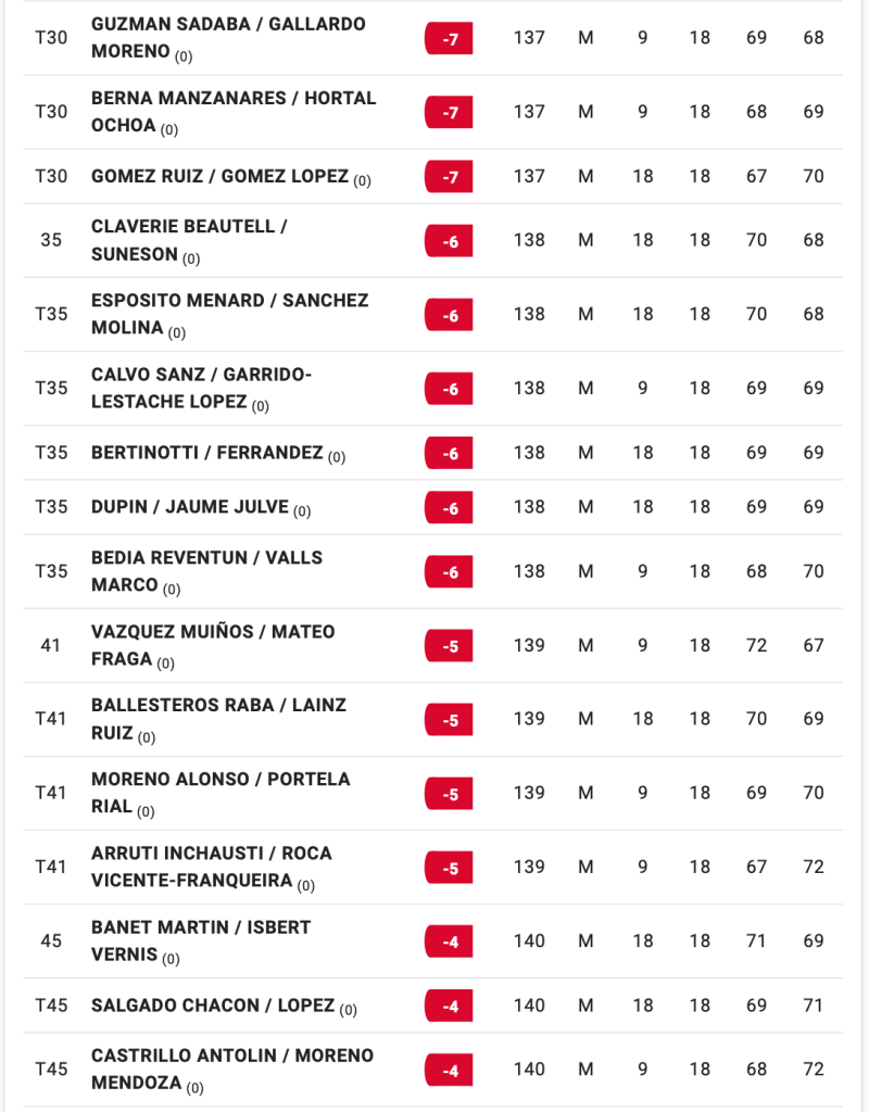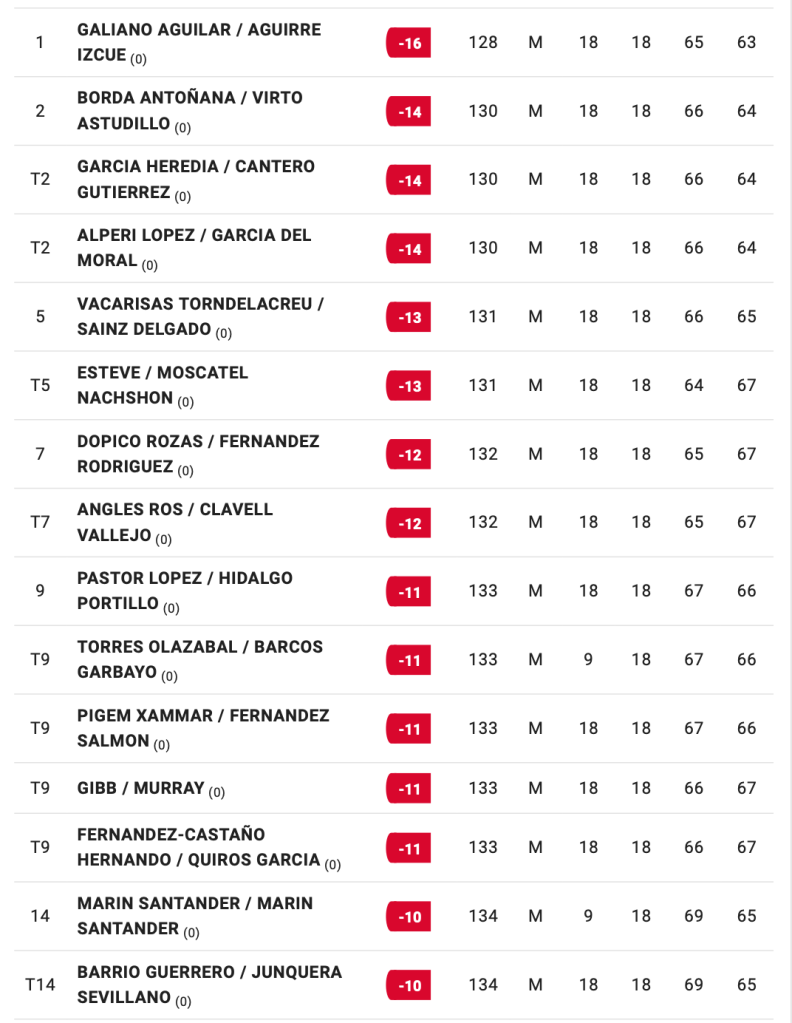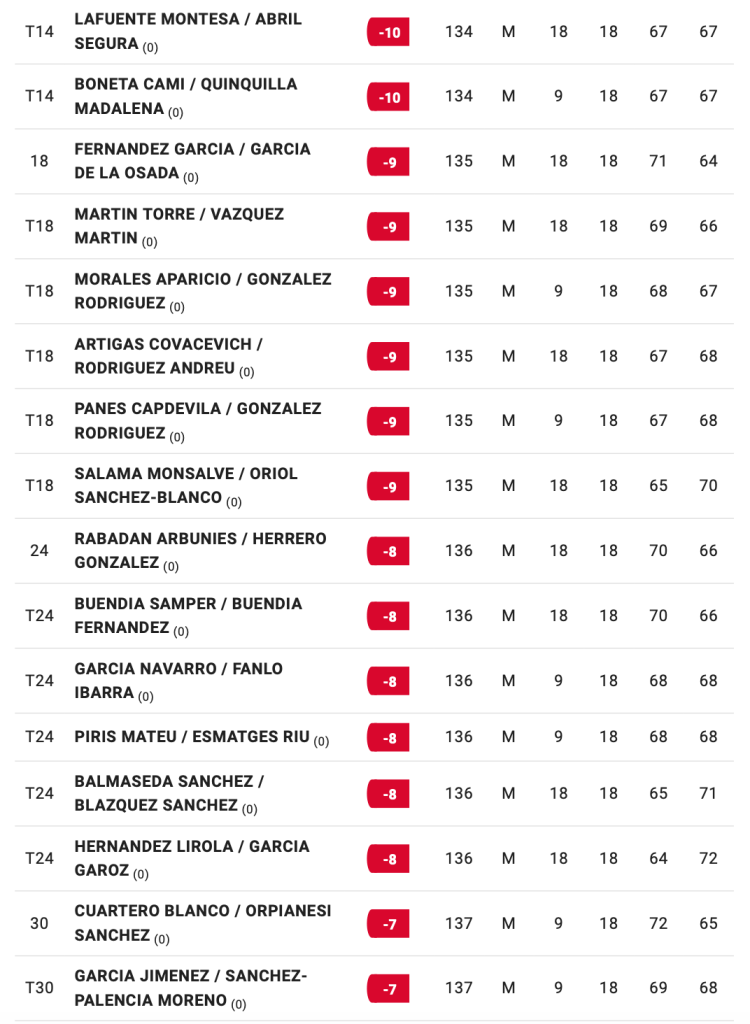 HORARIOS SALIDAS 2ª JORNADA TORNEO PGA ESPAÑA DOBLES / IZKI GOLF