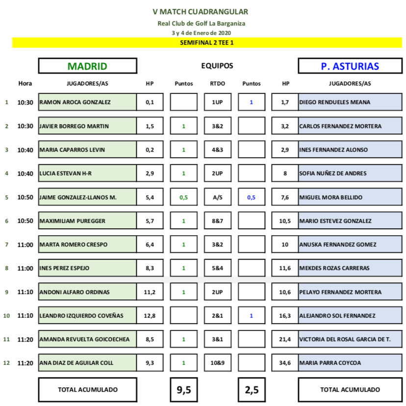 Resultados 1ª jornada V Cuadrangular Asturias, Pais Vasco, Madrid y Cataluña – RCG LA BARGANIZA