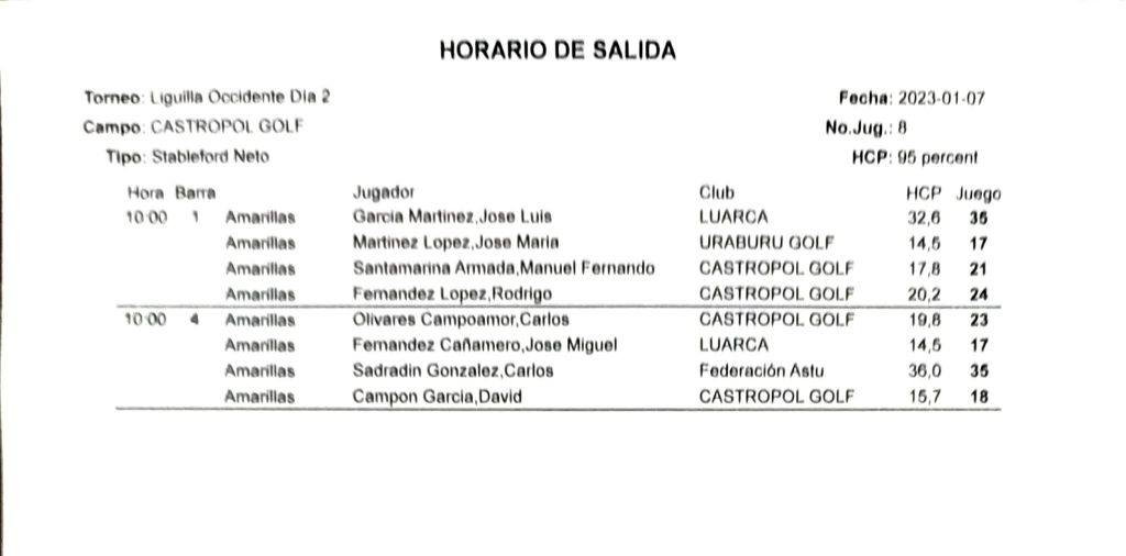 Horarios salida 1ª jornada Torneo Reyes 2023/ Castropol Golf por Golf por Asturias en 7 enero, 2023 Compártelo: Compartir en X (Se abre en una ventana nueva) X Comparte en Facebook (Se abre en una ventana nueva) Facebook Me gusta Cargando...