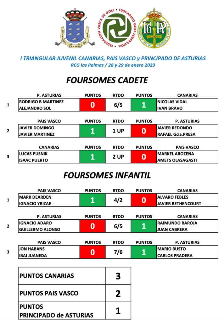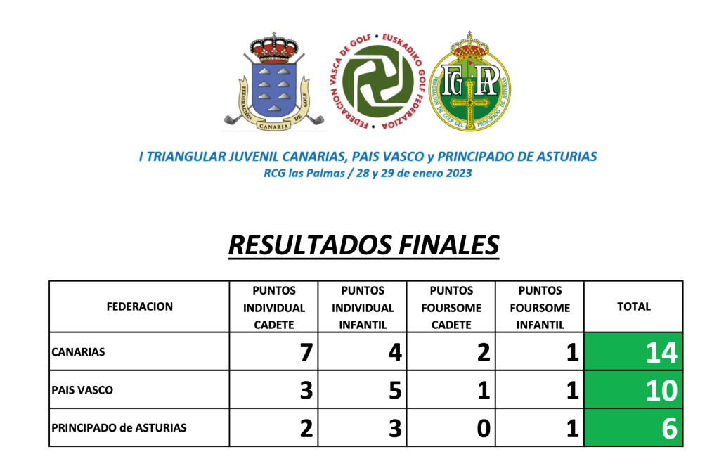 Resultados finales I Triangular Juvenil Canarias, País Vasco y Principado de Asturias / RG Las Palmas 28 y 29 enero 2023