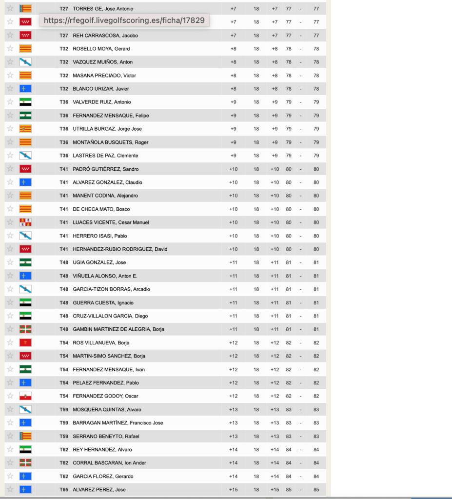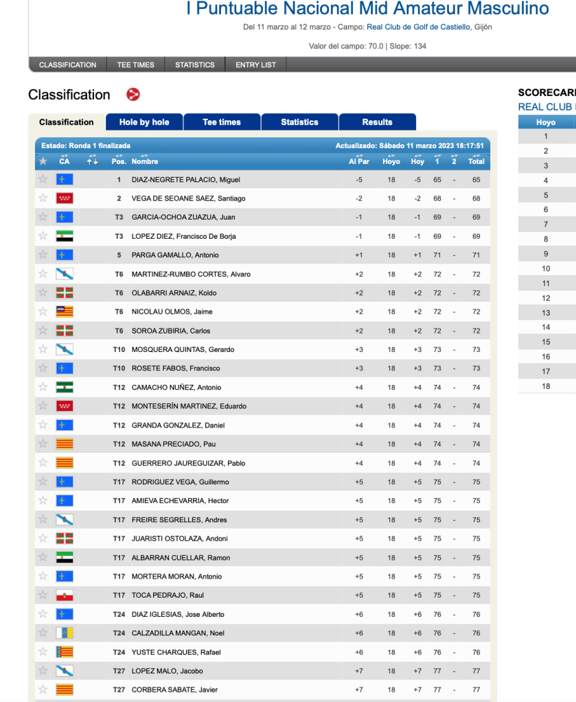 Después de disputarse la primera jornada del Mid-Amateur Masculino 2023 en el recorrido del RCG de Castiello, el jugador local Miguel Díaz-Negrete lidera la clasificación.