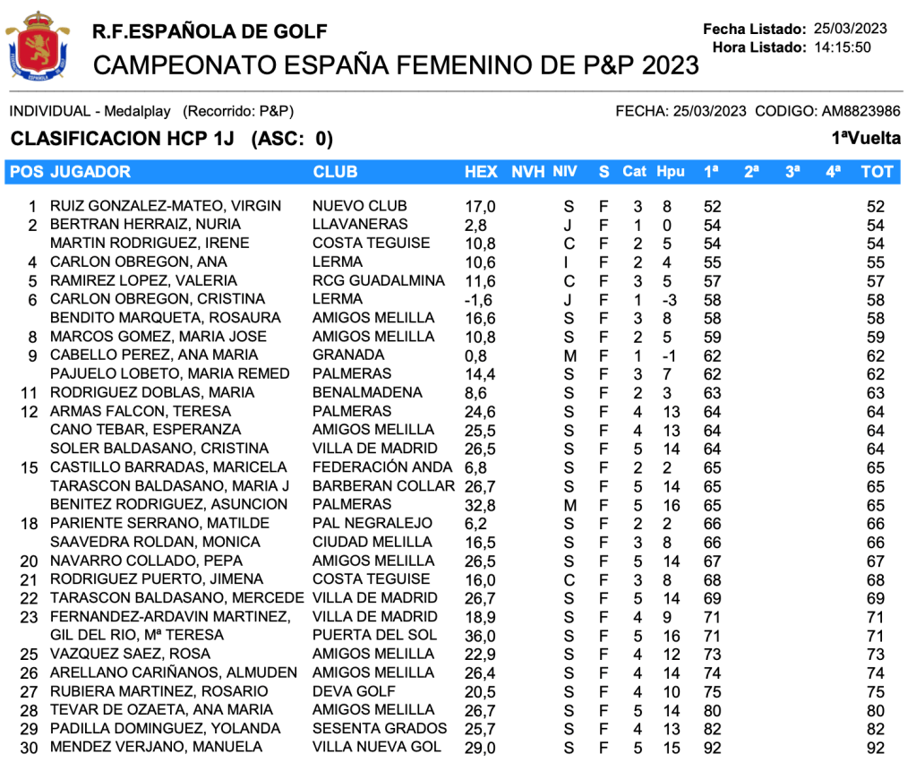 Resultados 1ª jornada Campeonato Femenino de P&P 2023 / Banus Executive Golf por Golf por Asturias en 25 marzo, 2023 Nuestra representante en el campeonato Rosario Rubiera Martinez termina su primera vuelta con 75 golpes , ocupa el opuesto vigésimo séptimo de la clasificación. foto RFEG Compártelo: Haz clic para compartir en X (Se abre en una ventana nueva) X Haz clic para compartir en Facebook (Se abre en una ventana nueva) Facebook Me gusta Cargando...