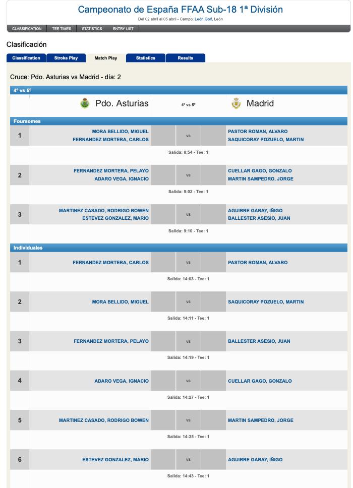 PRINCIPADO DE ASTURIAS & MADRID EN CUARTOS DE FINAL VIII CTO. ESPAÑA FEDERACIONES SUB18 MASCULINO / LEON GOLF
