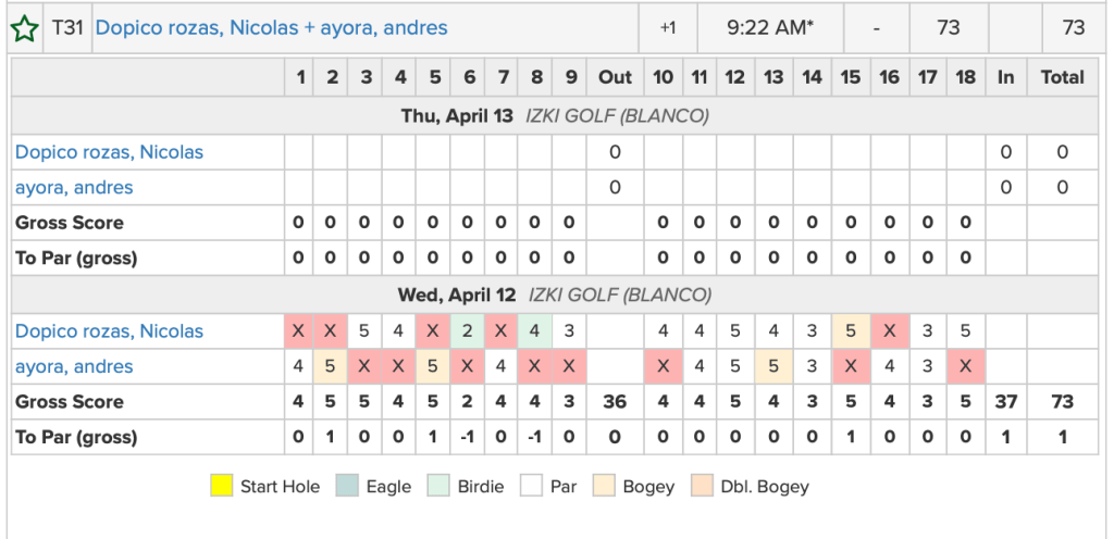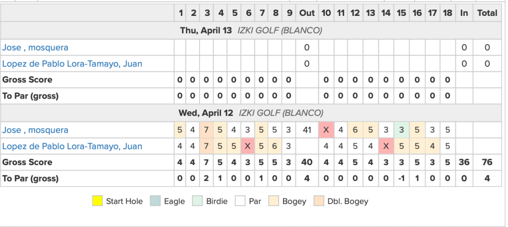 Hoy miércoles 12 de abril comienza el campeonato de parejas que organiza la PGAe, los 18 hoyos de Izki Golf pondrán a prueba el Swing de Nicolás Dopico , Alvaro Veiga Peña y José Mosquera.