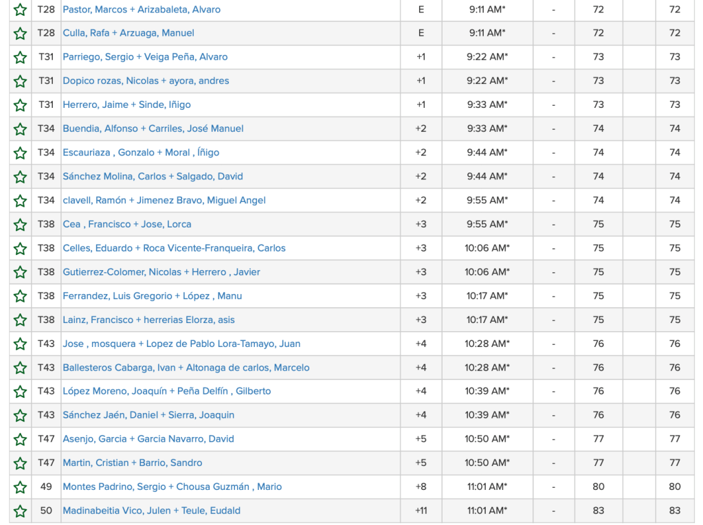 Ya tenemos los primeros resultados de la prueba de hoy, mandan con mano firme Ruben Gonzalez y Jordi Panes con -6
