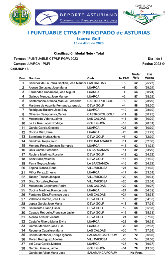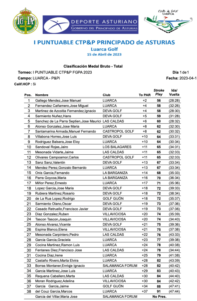 Resultados I Puntuable P&P 2023 / Golf Luarca