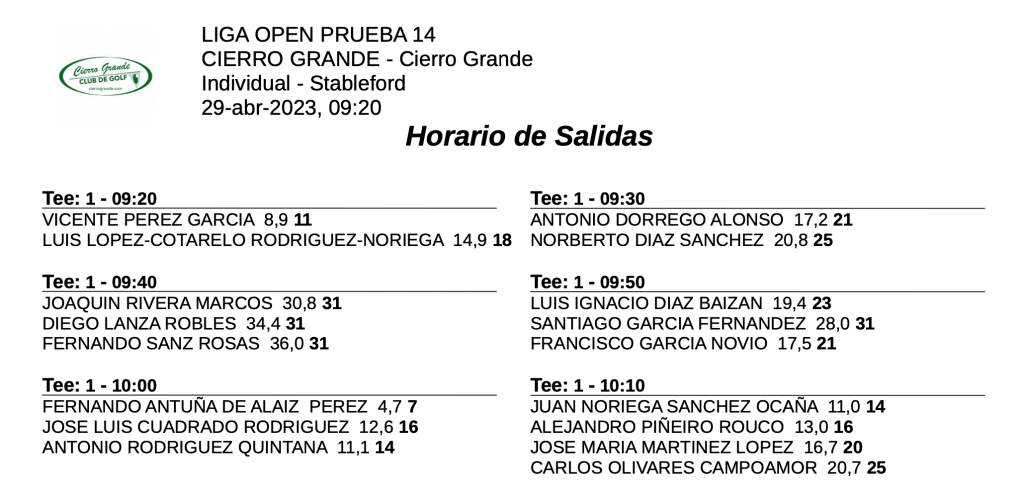 SALIDAS VIERNES 14ª JORNADA LIGA OPEN / CIERRO GRANDE GOLF por Golf por Asturias en 28 abril, 2023 Compártelo: Compartir en X (Se abre en una ventana nueva) X Comparte en Facebook (Se abre en una ventana nueva) Facebook Me gusta Cargando...