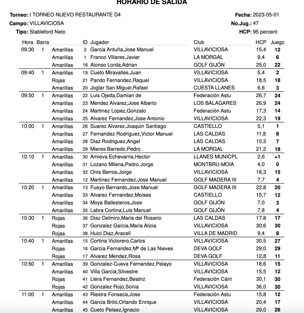 HORARIO SALIDAS LUNES 1 MAYO 2023 / TORNEO RESTAURANTE VILLAVICIOSA GOLF por Golf por Asturias en 1 mayo, 2023 SALIDAS MAÑANA SALIDAS TARDE Compártelo: Compartir en X (Se abre en una ventana nueva) X Comparte en Facebook (Se abre en una ventana nueva) Facebook Me gusta Cargando...