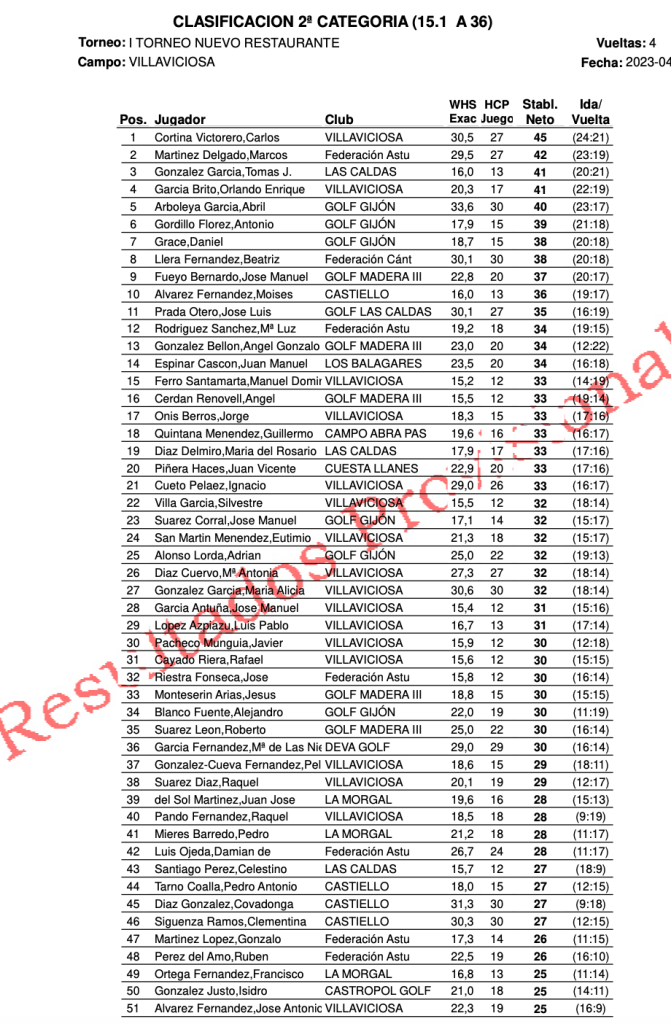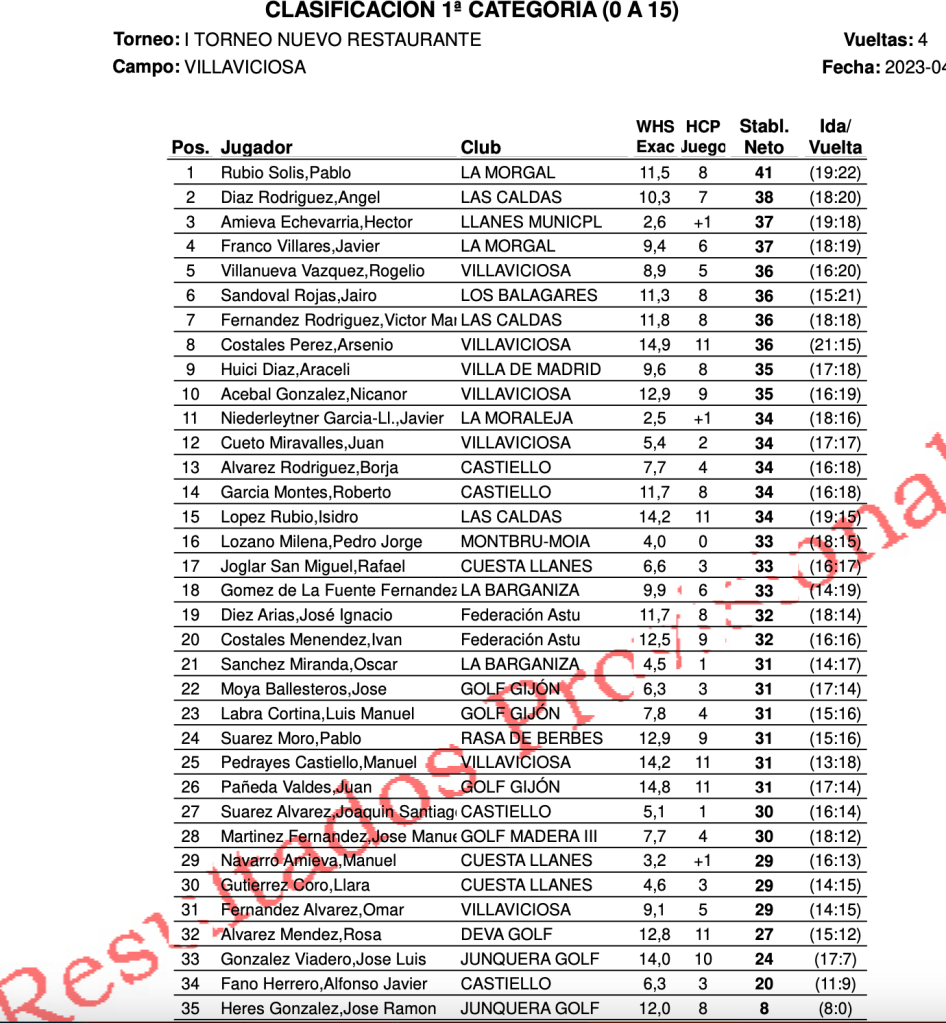 Resultados I Torneo Nuevo Restaurante Villaviciosa Golf por Golf por Asturias en 2 mayo, 2023 El pasado fin de semana, se celebro en el recorrido del club de golf Villaviciosa el I torneo del Restaurante , bajo nueva dirección, con los siguientes resultados. 1ª CATEGORIA 2ª CATEGORIA Compártelo: Compartir en X (Se abre en una ventana nueva) X Comparte en Facebook (Se abre en una ventana nueva) Facebook Me gusta Cargando...
