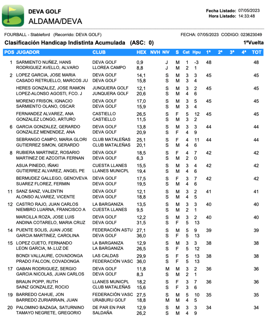 Resultados Desafio Deva Golf / Aldama Golf ( 2023 ) – DEVA GOLF por Golf por Asturias en 7 mayo, 2023 CLASIFICACION PAREJAS CLASIFICACION INDIVIDUAL CUADRO DE HONOR Compártelo: Compartir en X (Se abre en una ventana nueva) X Comparte en Facebook (Se abre en una ventana nueva) Facebook Me gusta Cargando...