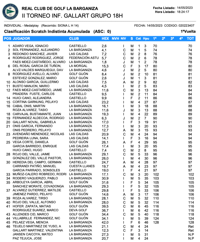 II Torneo Infantil Grupo Gallart / RCG LA BARGANIZA por Golf por Asturias en 16 mayo, 2023 El pasado 14 de mayo, se celebro en el recorrido del RCG de la Barganiza el II Torneo Infantil Grupo Gallart, con los siguientes resultados. Compártelo: Compartir en X (Se abre en una ventana nueva) X Comparte en Facebook (Se abre en una ventana nueva) Facebook Me gusta Cargando...