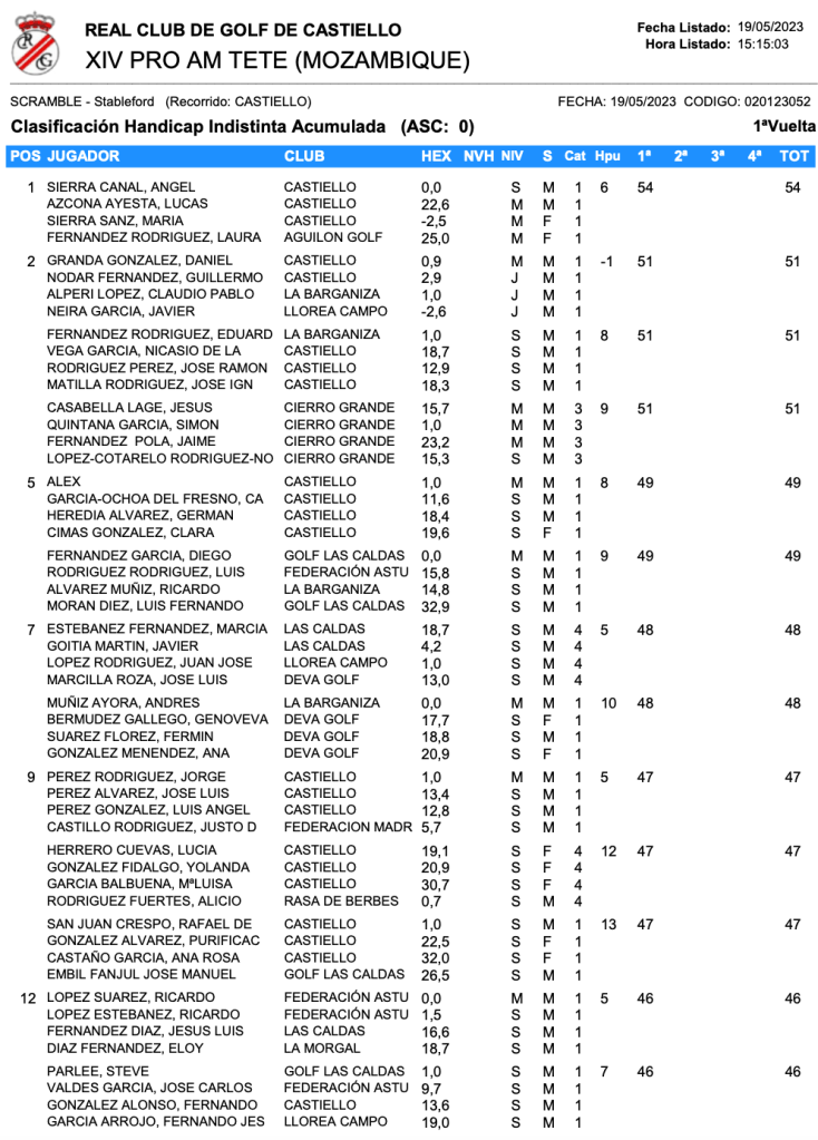 Un año más, Carlos Garcia-Ochoa, jugador de golf del RCG de Castiello, organiza un Pro-Am benéfico, TETE DE MOZAMBIQUE, es la decimocuarta edición y como siempre con gran afluencia de jugadores y la ayuda de diferentes profesionales de Golf.