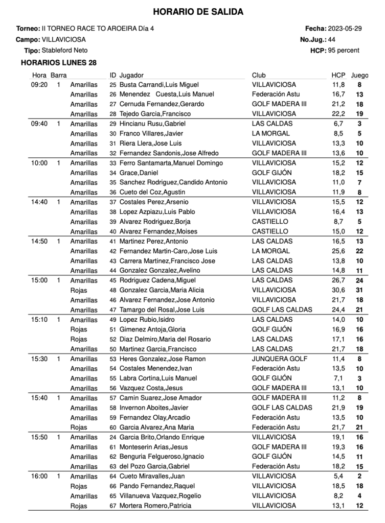 SALIDAS DOMINGO Y LUNES II TORNEO RACE TO AROEIRA / VILLAVICIOSA GOLF por Golf por Asturias en 28 mayo, 2023 SALIDAS DOMINGO SALIDAS LUNES Compártelo: Compartir en X (Se abre en una ventana nueva) X Comparte en Facebook (Se abre en una ventana nueva) Facebook Me gusta Cargando...