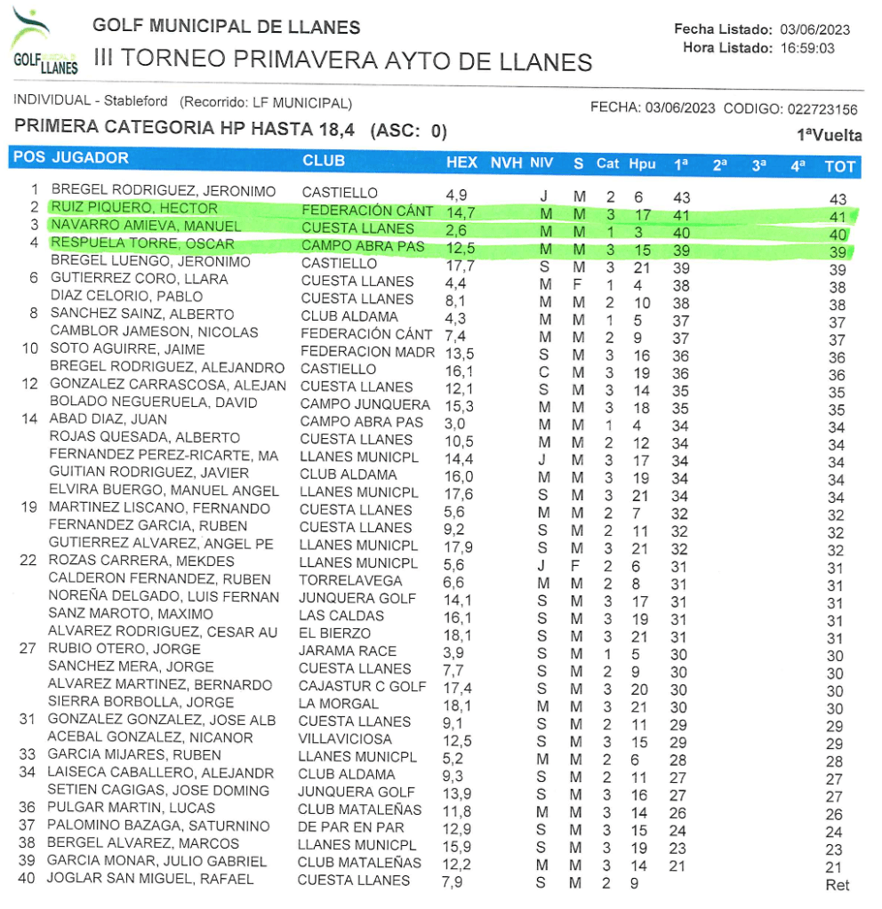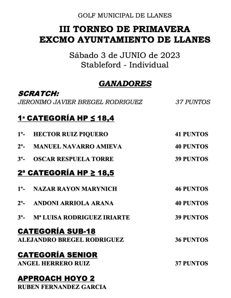 Resultados III Torneo Primavera Ayto. Llanes _ C.M. Golf Llanes por Golf por Asturias en 5 junio, 2023 CUADRO DE GANADORES CLASIFICACION HANDICAP Compártelo: Compartir en X (Se abre en una ventana nueva) X Comparte en Facebook (Se abre en una ventana nueva) Facebook Me gusta Cargando...