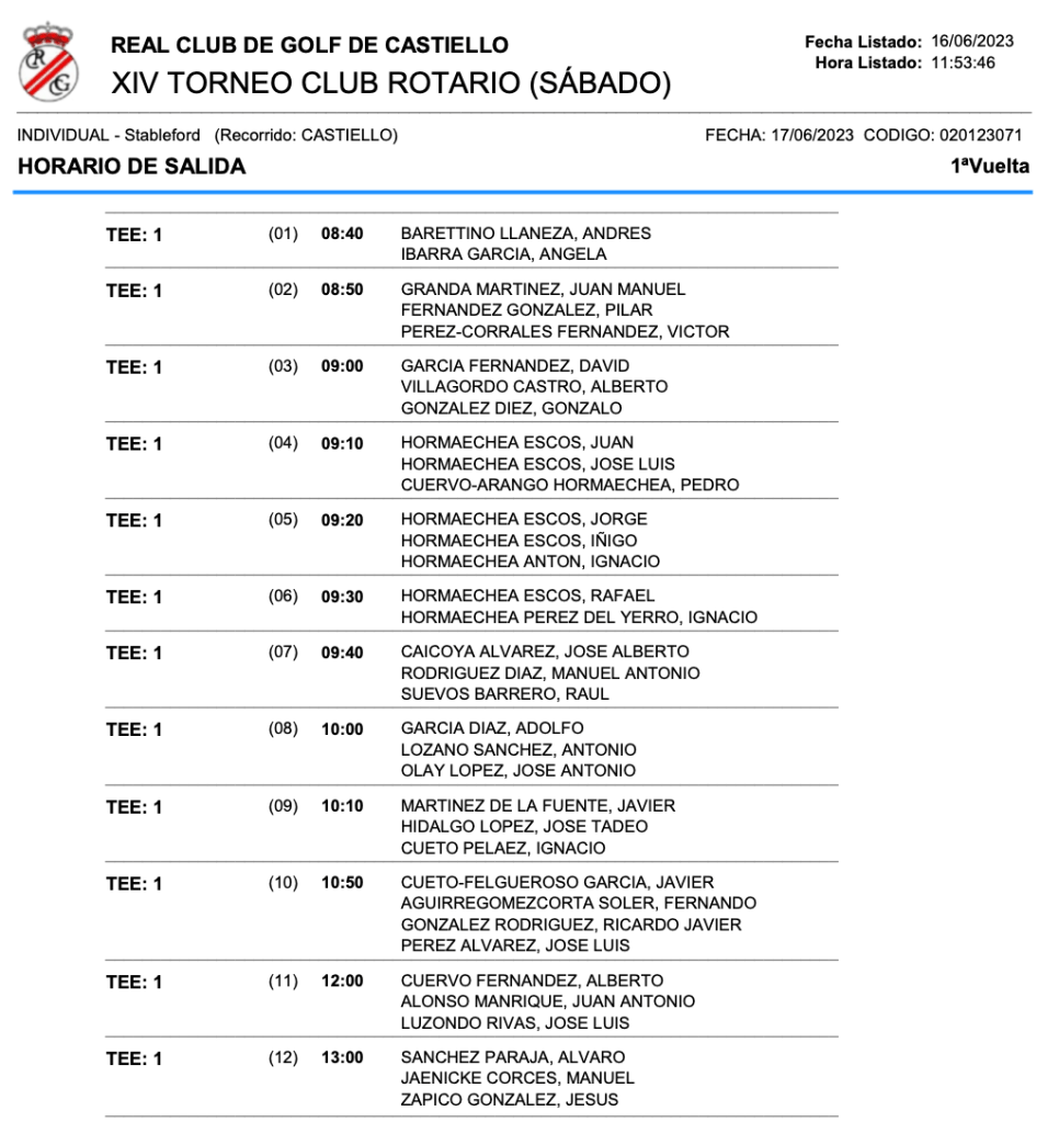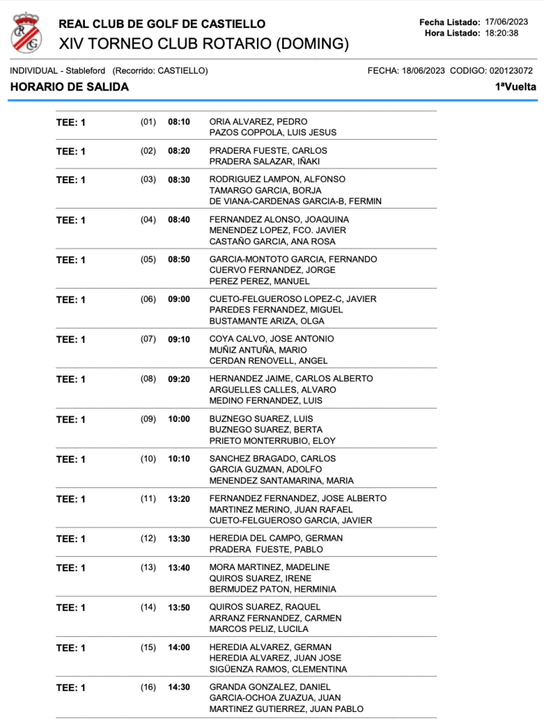 HORARIOS SABADO Y DOMINGO XIV TORNEO DE GOLF CLUB ROTARIO DE GIJÓN / RCG CASTIELLO por Golf por Asturias en 17 junio, 2023 SALIDAS SABADO SALIDAS DOMINGO Compártelo: Compartir en X (Se abre en una ventana nueva) X Comparte en Facebook (Se abre en una ventana nueva) Facebook Me gusta Cargando...