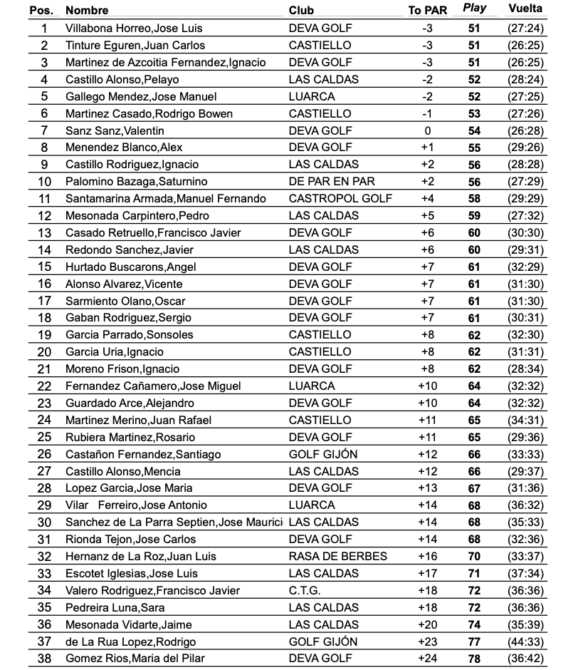 Esta mañana, se celebro el III Puntuable del Principado de Asturias 2023 en la modalidad de P&P, el ganador de la prueba fue Jose Luis Villabona que marco 51 golpes, con los mismos golpes se situaron Juan Carlos Tinturé e Ignacio Martinez de Azcoitia.