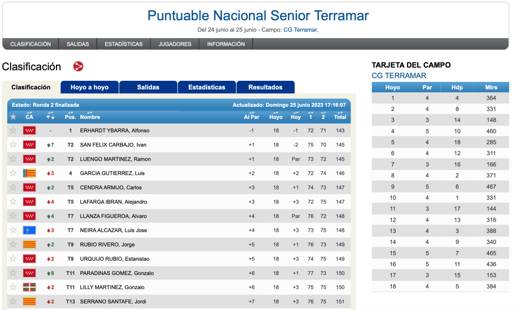 El asturiano Luis Neira, finaliza septimo en el IV puntuable nacional senior amateur masculino 2023, la prueba se realizo en el recorrido de Terramar Golf, Neira, único representante asturiano en la prueba, sumo un total de 148 golpes, parciales de 73 y 75 se apunta un Top Ten en su palmares.
