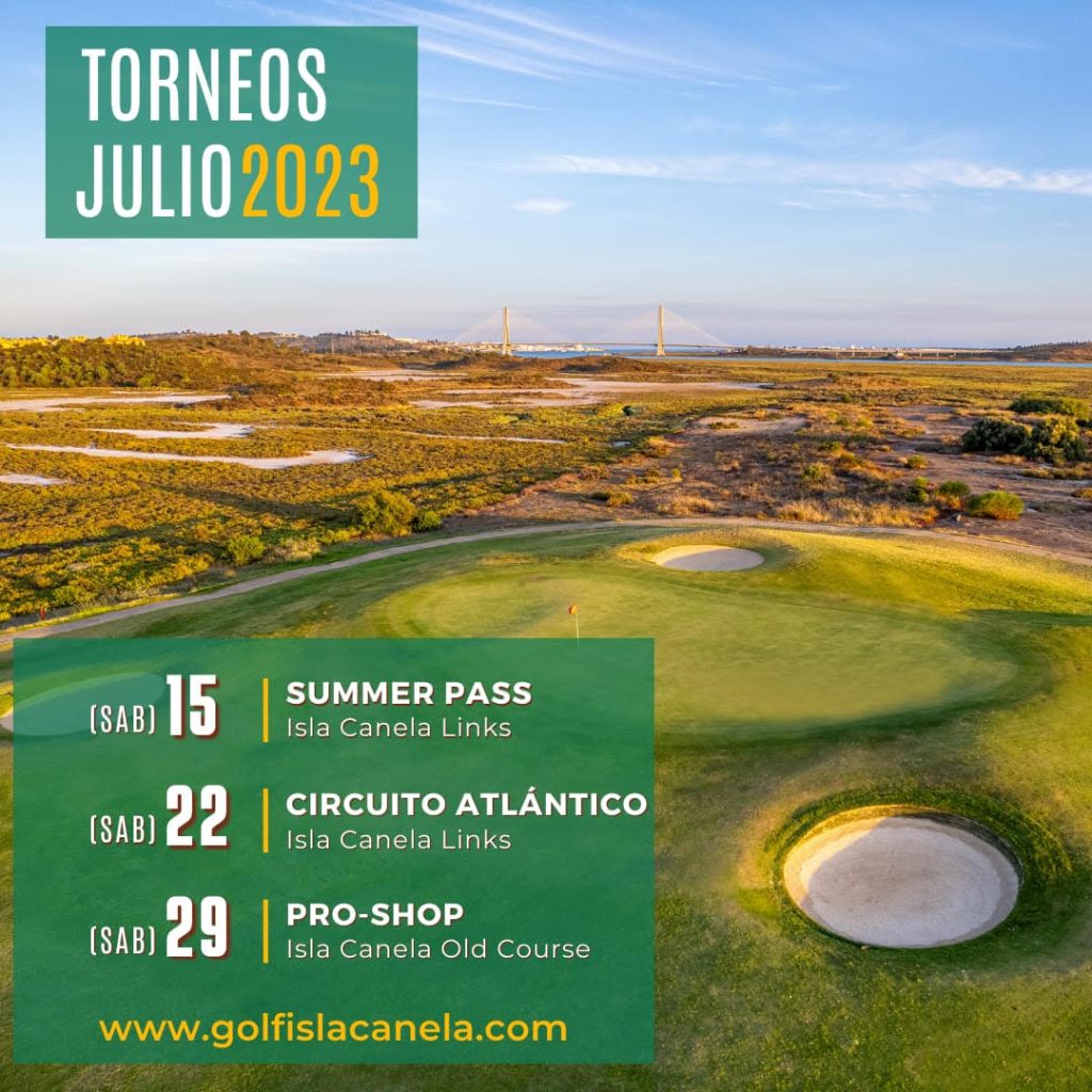 Nuestro amigo en Isla Canela Golf Jose Luis Marquez, starter y casa Club, nos envía los torneos para este mes de julio, para los que podáis disfrutar de vacaciones y jugar a Golf en Julio
