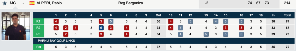 El amateur asturiano Pablo Alperi falla el corte que le permitía continuar jugando el Europeo Amateur Masculino, esta prueba se celebra estos días en el campo de Golf de PÄRNU BAY GOLF LINKS ( Estonia),