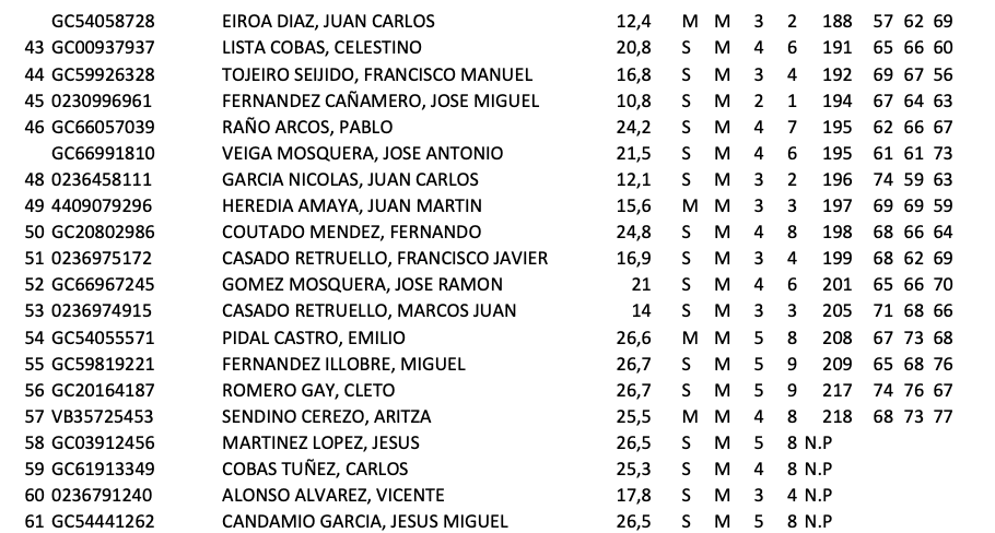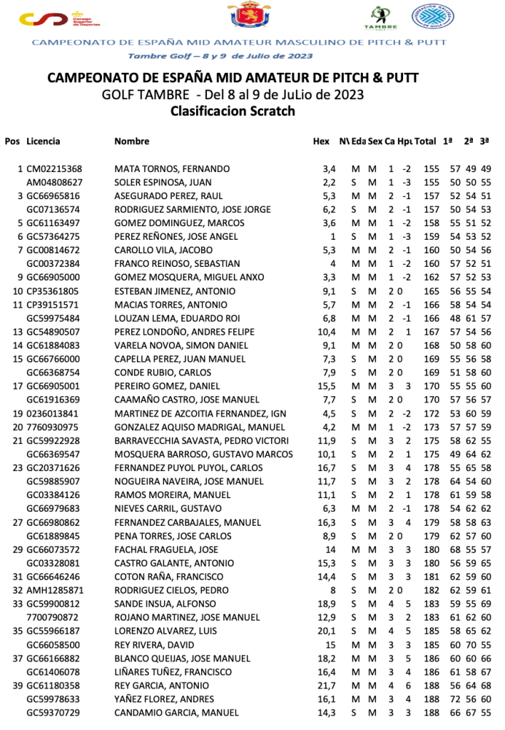 El pasado fin de semana, se celebro en el recorrido del campo gallego de Tambre Golf, el campeonato mid-amateur masculino bajo la modalidad de P&P, varios fueron los jugadores que acudieron a dicha prueba, al final de las tres vueltas realizadas, Ignacio Martinez de Azcoitia finalizo como mejor asturiano situado en la clasificación, ocupo el puesto decimonónica noveno , con un total de 172 golpes, parciales de 53, 60 y 59, el siguiente asturiano fue Jose Miguel Fdez. Cañamero en el puesto 45º y 194 golpes, le sigue Juan Carlos Garcia Nicolas con 196 golpes y puesto 48º, y los hermanos Casado Retruello en los puestos 51º y 53 , sumaron 199 y 205 golpes en total.