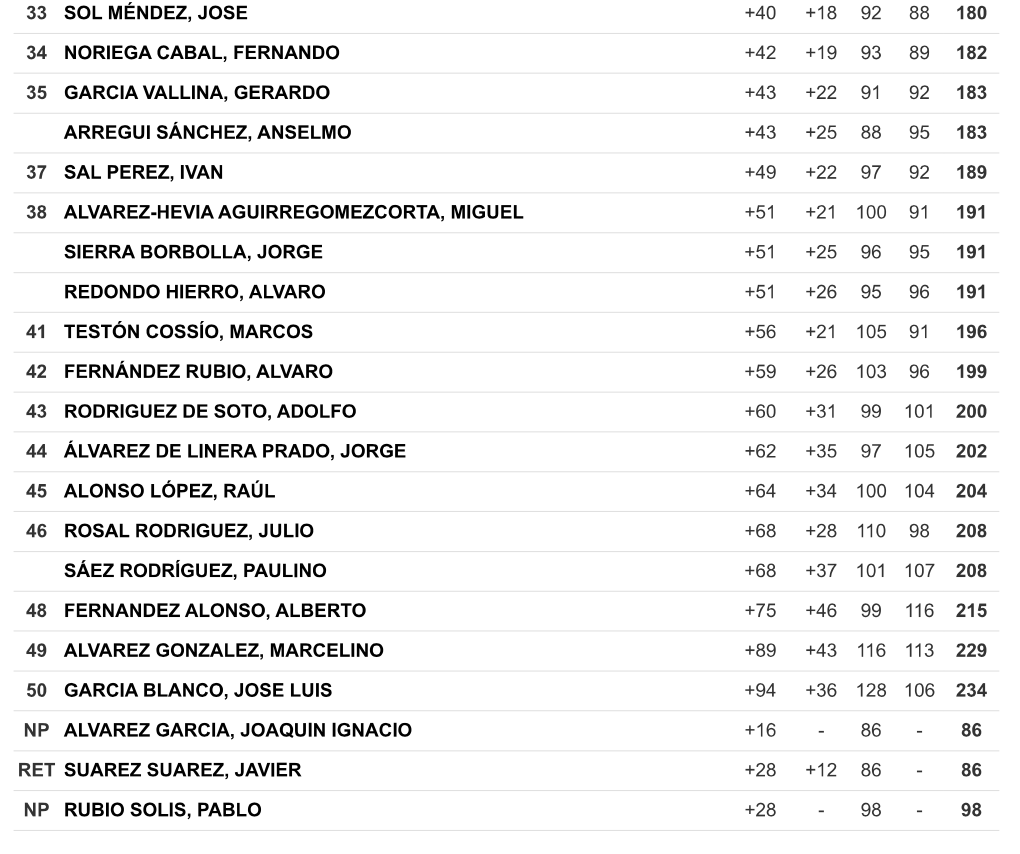 Javier Blanco termina en cuarta posición y un triple empate para la quinta plaza entre Alberto Fernandez, Antonio Mortera y Hector Amieva