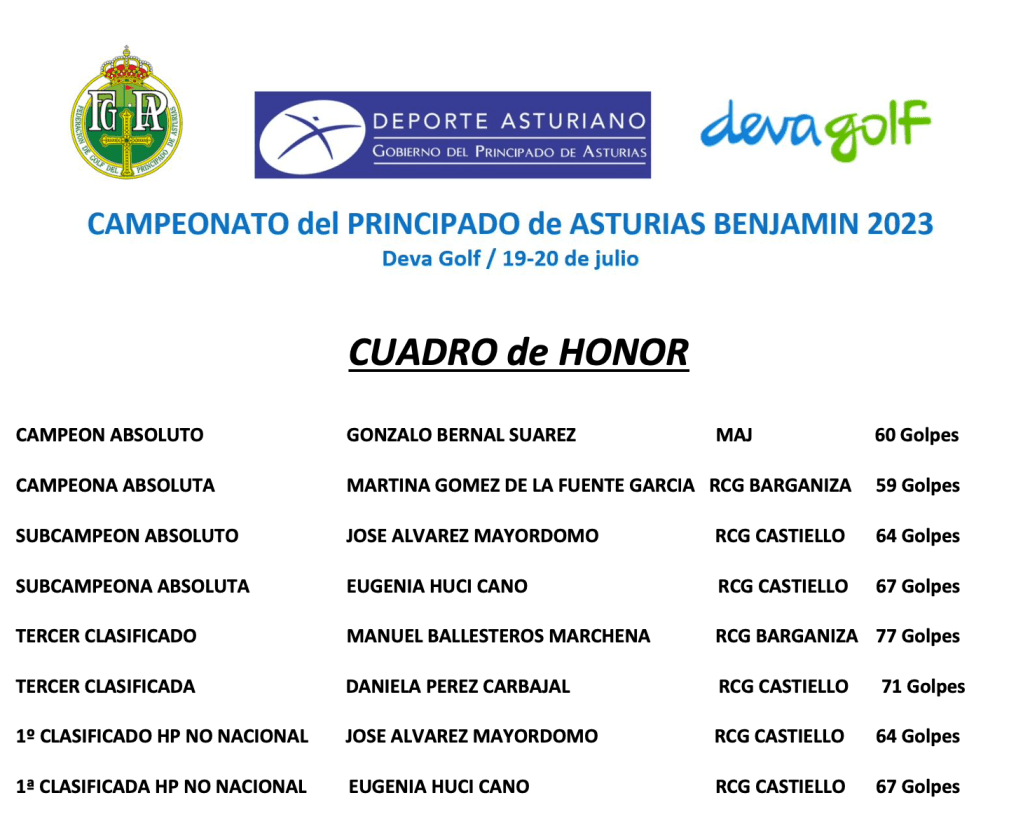 Martina Gómez de la Fuente y Gonzalo Bernal Suárez Campeones del PA Benjamín 2023 / Deva Golf