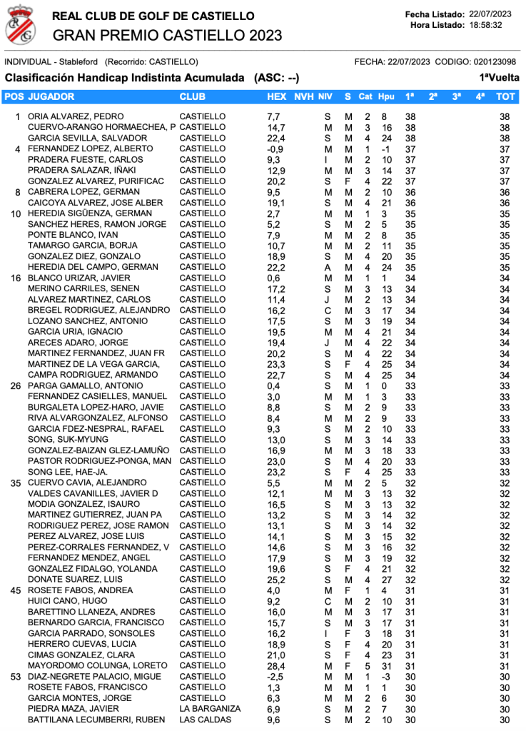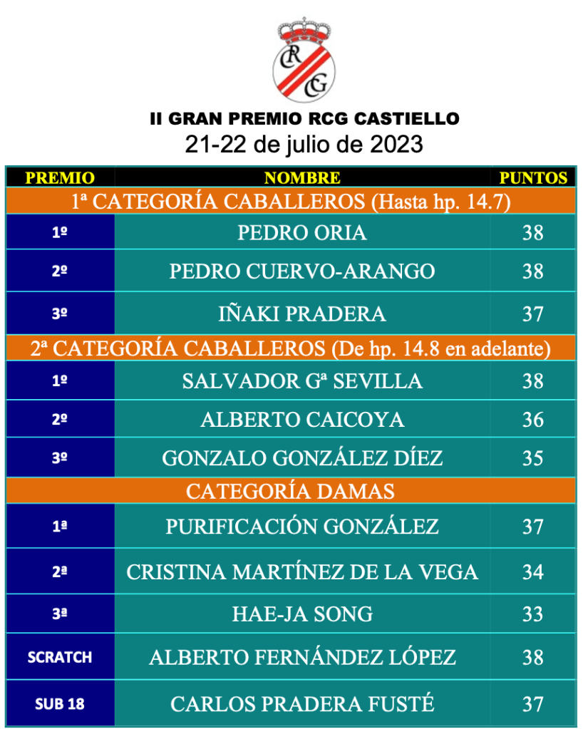 RESULTADOS II GRAN PREMIO RCG CASTIELLO por Golf por Asturias en 23 julio, 2023 CLASIFICACION HANDICAP CUADRO DE HONOR Compártelo: Compartir en X (Se abre en una ventana nueva) X Comparte en Facebook (Se abre en una ventana nueva) Facebook Me gusta Cargando...
