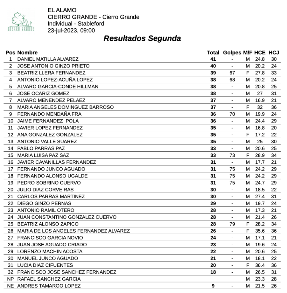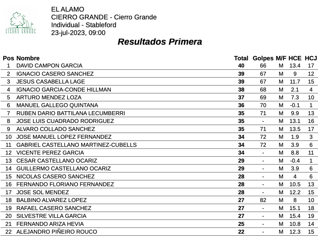 Resultados Torneo El Alamo 2023 / Cierro Grande Golf por Golf por Asturias en 24 julio, 2023 CLASIFICACION 1ª CATEGORIA CLASIFICACION 2ª CATEGORIA Compártelo: Compartir en X (Se abre en una ventana nueva) X Comparte en Facebook (Se abre en una ventana nueva) Facebook Me gusta Cargando...