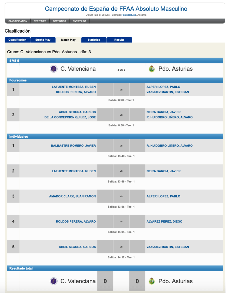 Resultados 2ª jornada Inter FF AA Absoluto Masculino / FONT DEL LLOP GOLF COURSE
