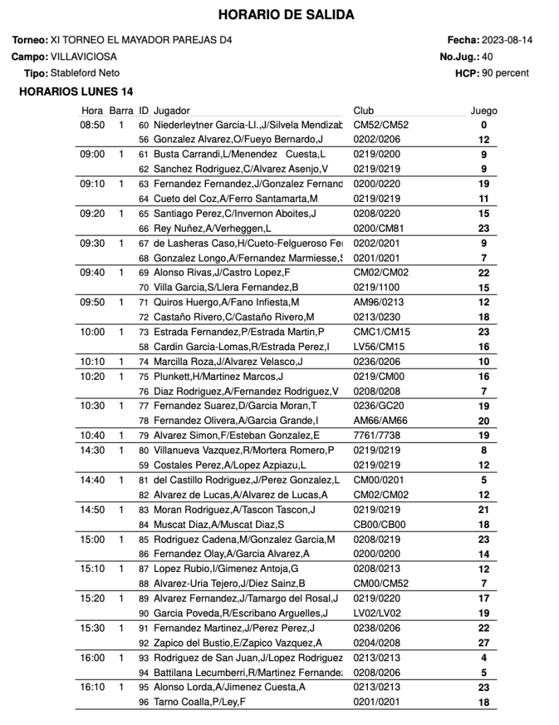 Horarios salidas lunes Torneo EL MAYADOR ( parejas) / Villavicosa Golf por Golf por Asturias en 14 agosto, 2023 Compártelo: Compartir en X (Se abre en una ventana nueva) X Comparte en Facebook (Se abre en una ventana nueva) Facebook Me gusta Cargando...