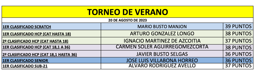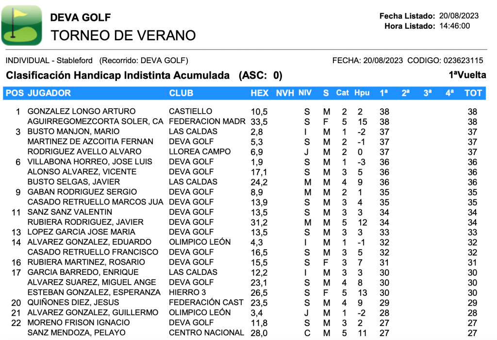 RESULTADOS TORNEO VERANO 2023 / DEVA GOLF por Golf por Asturias en 21 agosto, 2023 CUADRO DE HONOR CLASIFICACION HANDICAP Compártelo: Compartir en X (Se abre en una ventana nueva) X Comparte en Facebook (Se abre en una ventana nueva) Facebook Me gusta Cargando...