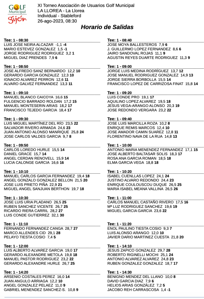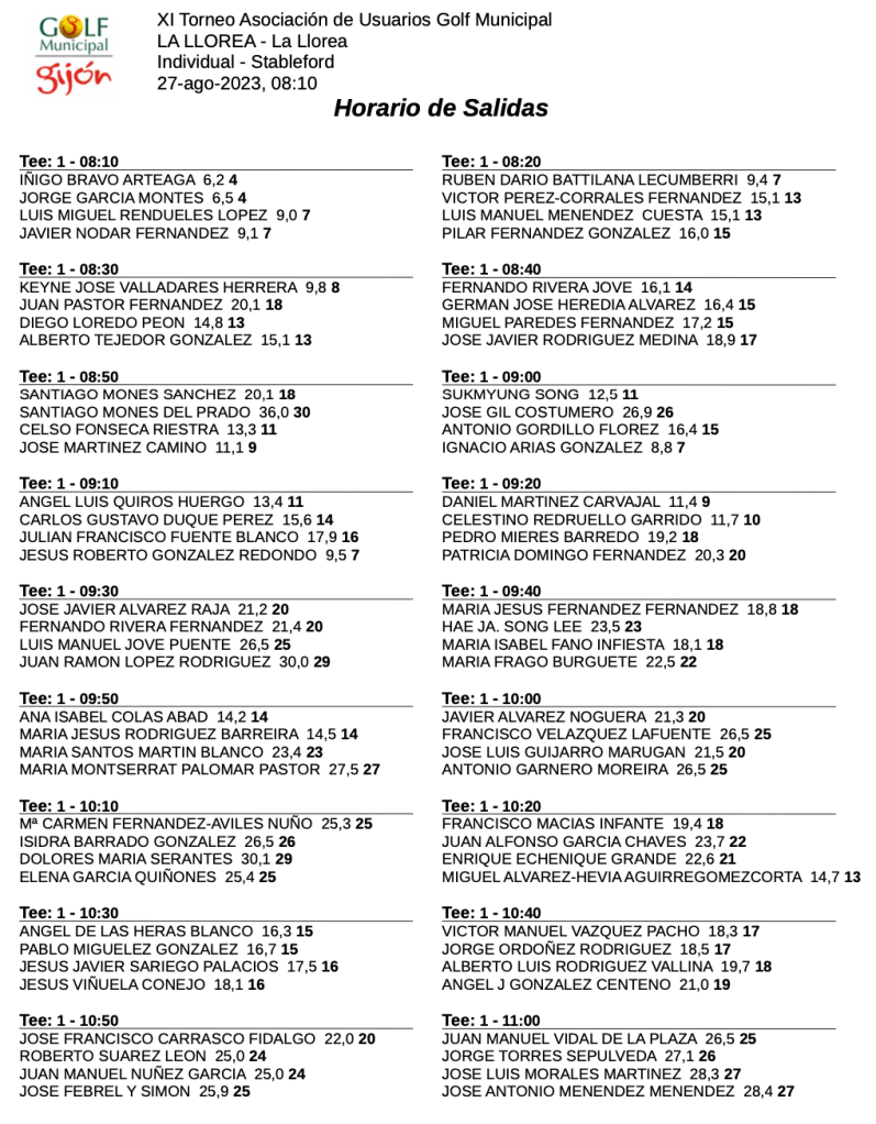 Horarios salidas sábado y domingo XI Torneo Asociación de Usuarios Golf Municipal/ C.M. Golf La Llorea por Golf por Asturias en 26 agosto, 2023 SALIDAS SABADO SALIDAS DOMINGO Compártelo: Compartir en X (Se abre en una ventana nueva) X Comparte en Facebook (Se abre en una ventana nueva) Facebook Me gusta Cargando...
