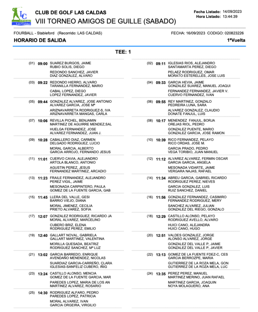 SALIDAS VIERNES Y SABADO VIII TORNEO AMIGOS DE GUILLE / C.M. GOLF LAS CALDAS por Golf por Asturias en 15 septiembre, 2023 SALIDAS VIERNES SALIDAS SABADO Compártelo: Compartir en X (Se abre en una ventana nueva) X Comparte en Facebook (Se abre en una ventana nueva) Facebook Me gusta Cargando...