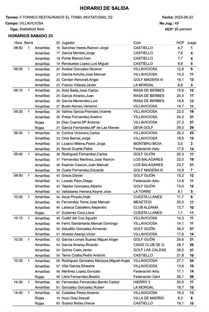 Salidas viernes y sábado II Torneo EL TONEL / Villaviciosa Golf por Golf por Asturias en 23 septiembre, 2023 SALIDAS VIERNES SALIDAS SABADO Compártelo: Compartir en X (Se abre en una ventana nueva) X Comparte en Facebook (Se abre en una ventana nueva) Facebook Me gusta Cargando...