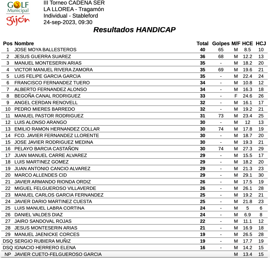 Resultados III Torneo Cadena SER / C.M. GOLF TRAGAMON por Golf por Asturias en 25 septiembre, 2023 Compártelo: Haz clic para compartir en X (Se abre en una ventana nueva) X Haz clic para compartir en Facebook (Se abre en una ventana nueva) Facebook Me gusta Cargando...