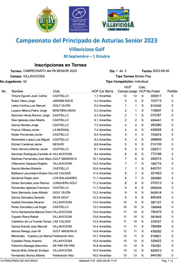 LISTADO PARTICIPANTES CAMPEONATO P.A. SENIOR 2023 / VILLAVICIOSA GOLF por Golf por Asturias en 29 septiembre, 2023 Compártelo: Compartir en X (Se abre en una ventana nueva) X Comparte en Facebook (Se abre en una ventana nueva) Facebook Me gusta Cargando...
