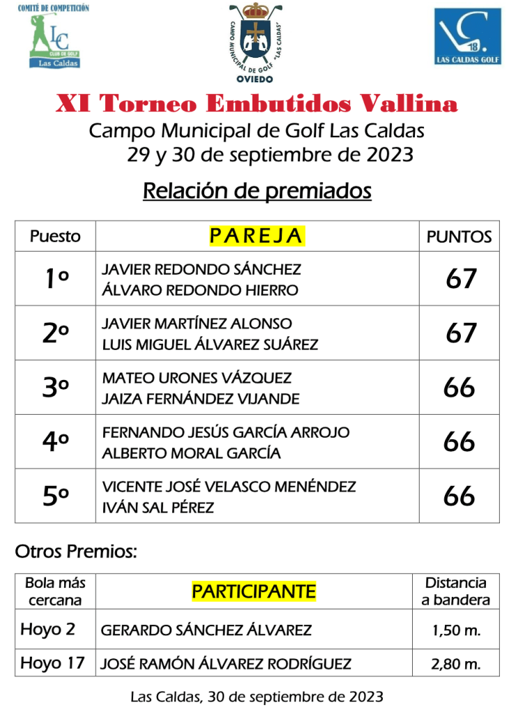 Resultados XI torneo Embutidos Vallina / C.M. Golf Las Caldas por Golf por Asturias en 1 octubre, 2023 CUADRO DE HONOR Compártelo: Haz clic para compartir en X (Se abre en una ventana nueva) X Haz clic para compartir en Facebook (Se abre en una ventana nueva) Facebook Me gusta Cargando...