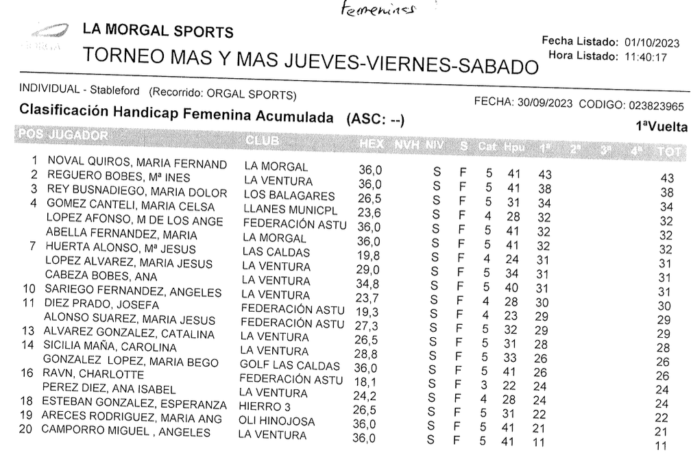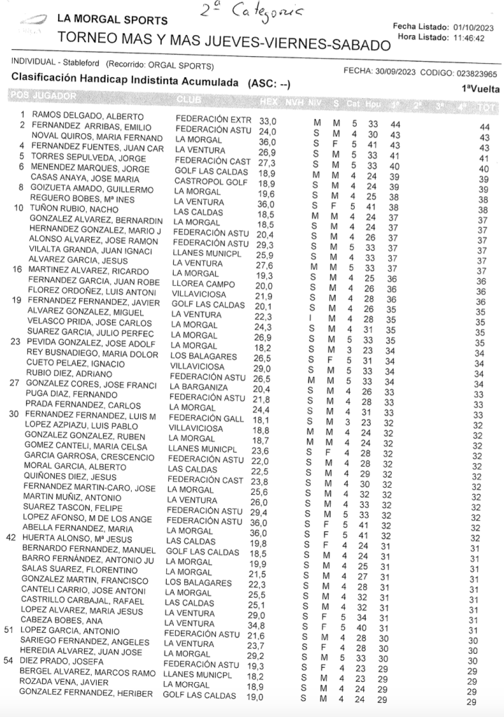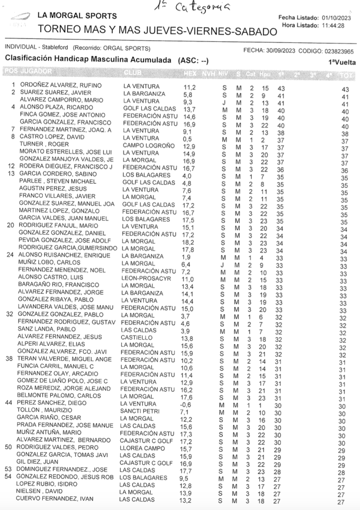 Resultados Torneo MAS Y MAS 2023 / La Morgal Golf por Golf por Asturias en 4 octubre, 2023 CLASIFICACION 1ª CATEGORIA CLASIFICACION 2ª CATEGORIA CLASIFICACION FEMENINA Compártelo: Compartir en X (Se abre en una ventana nueva) X Comparte en Facebook (Se abre en una ventana nueva) Facebook Me gusta Cargando...