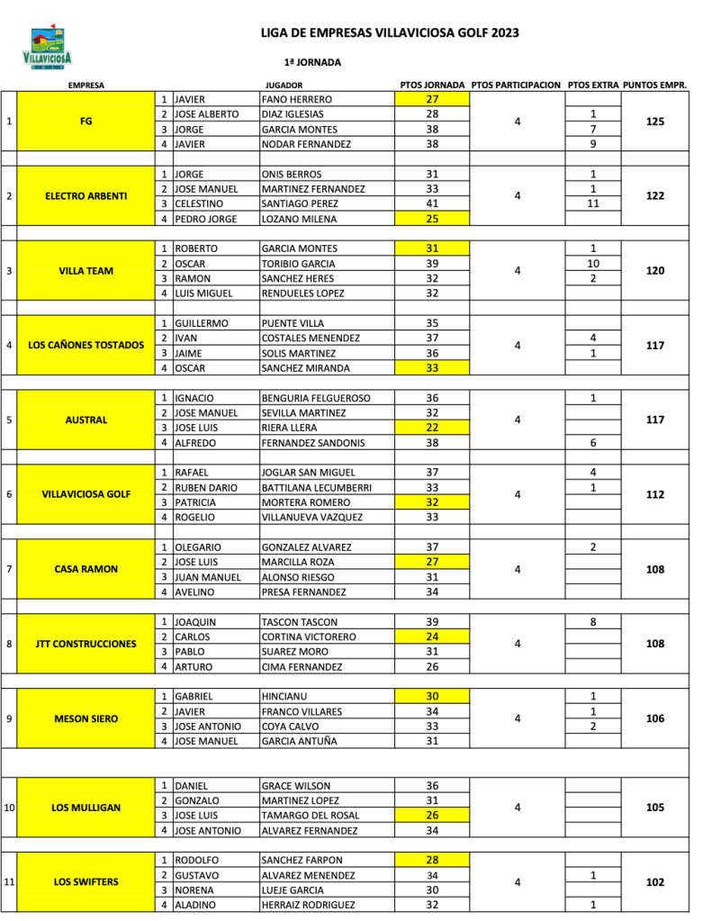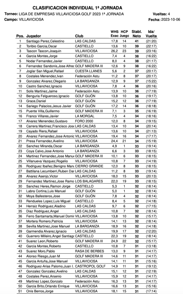 Resultados 1ª Jornada LIGA EMPRESAS 2023 / Villaviciosa Golf por Golf por Asturias en 11 octubre, 2023 CLASIFICACION INDIVIDUAL 1ª JORNADA CLASIFICACION EQUIPOS 1ª JORNADA Compártelo: Compartir en X (Se abre en una ventana nueva) X Comparte en Facebook (Se abre en una ventana nueva) Facebook Me gusta Cargando...