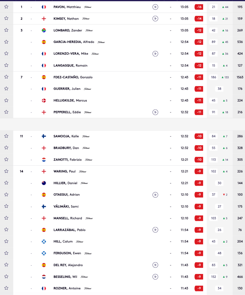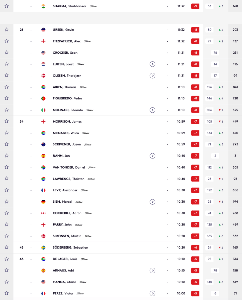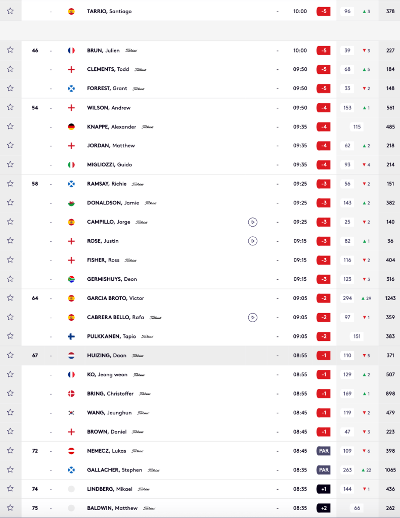 Gonzalo Fernandez -Castaño es séptimo, Larrazabal, Otaegui y Del Rey en el puesto decimo cuartos, Jon Rham es puesto 34º, Adri Arnaus y Santi Tarrio son puesto 46º, 58º Jorge Campillo y 64º Rafa Cabrera-Bello y Garcia Broto completan los españoles en disputar la ultima jornada.