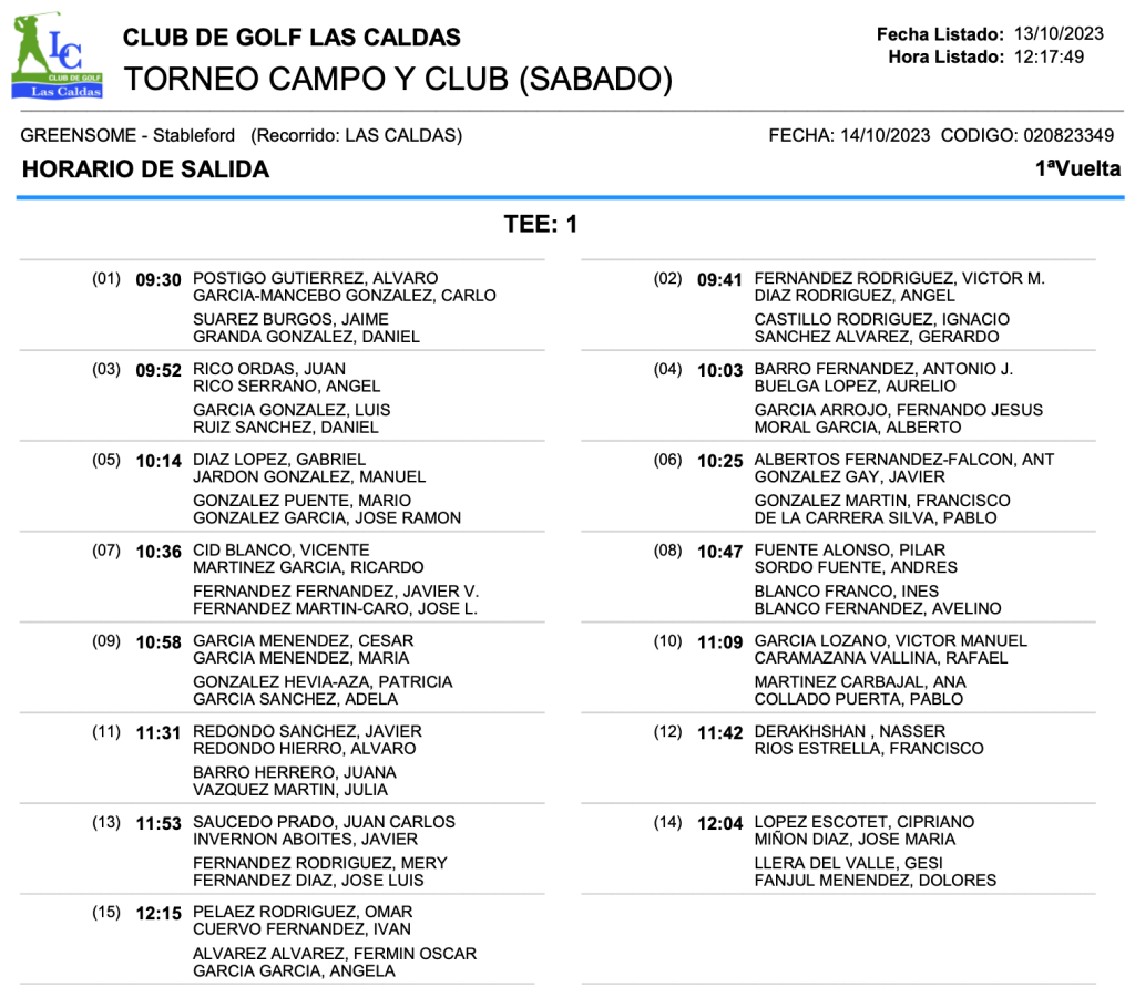 Salidas sábado y domingo Torneo CLUB Y CAMPO 2023 / C.M.GOLF Las Caldas por Golf por Asturias en 14 octubre, 2023 SALIDAS SABADO SALIDAS DOMINGO Compártelo: Haz clic para compartir en X (Se abre en una ventana nueva) X Haz clic para compartir en Facebook (Se abre en una ventana nueva) Facebook Me gusta Cargando...