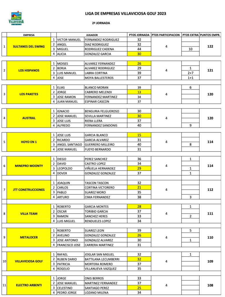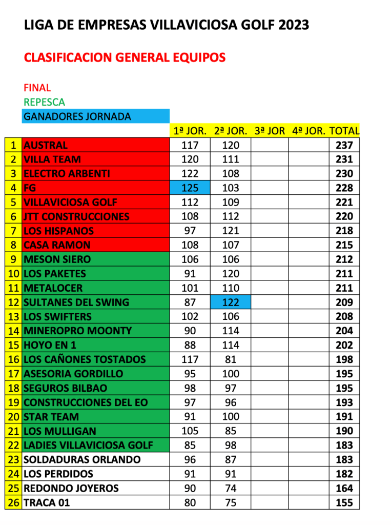 Resultados 2ª jornada LIGA EMPRESAS 2023 / Villaviciosa Golf por Golf por Asturias en 18 octubre, 2023 CLASIFICACION EQUIPOS 2ª JORNADA CLASIFICACION GENERAL 2ª JORNADA Compártelo: Haz clic para compartir en X (Se abre en una ventana nueva) X Haz clic para compartir en Facebook (Se abre en una ventana nueva) Facebook Me gusta Cargando...