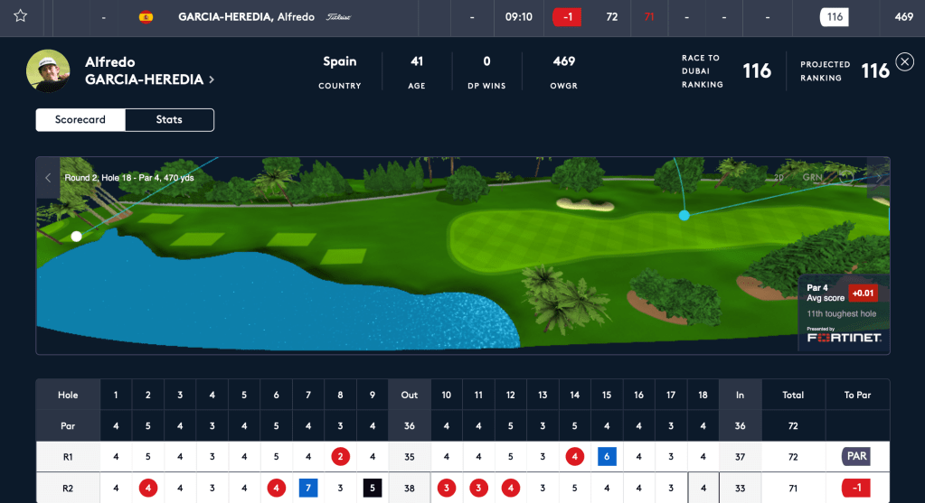 Tras finalizar la segunda jornada del Andalucia Masters 2023, Alfredo Garcia-Heredia supera el corte y accede a jugar el fin de semana, con este corte, Alfredo mantiene su tarjeta de juego para la próxima temporada del DP World Tour, objetivo marcado por el jugador en este final de circuito 2023.